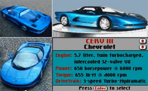 test_drive_3_gameplayOto i mapy – bynajmniej nie pre­tendujące do miana kompletnego opracowania kartograficznego obszarów na zachód od Yosemite. Mogą się jednak okazać przydatne pozwalając na skrzyżowaniu skręcić w stronę mety, zamiast w przeciwną. Mapy są schematyczne, toteż zawier­ają przede wszystkim informacje o skrzyżowaniach i rozjazdach, pomijając  wszystkie zakręty nie mające znaczenia w trakcie jazdy. Na krop­kowane odcinki dróg można wjechać, zwykle pod warunkiem przeskoczenia przez zarwaną nad rowem drogę.