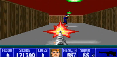 Problem polega na tym, że naziści tez strzelają. Nawet jeśli nie są w tej dziedzinie oszałamiająco skuteczni, strzał w głowę z odległości pot metra jest zabójczy. Najprostszym lekarstwem jest nie dopuszczanie ich tak blisko, co jednak nie zawsze bywa możliwe, wtedy jedyne co może nas uratować to refleks – trafiony Niemiec przez kilka dziesiątych sekundy rezygnuje z dalszych prób strzelania, dzięki czemu mamy czas na oddanie następnego strzału. W zależności od odległości. z jakiej strzelamy potrzeba jednego lub kilku trafień, żeby hitlerowiec nakrył się nogami, wydając swój ostatni okrzyk bojowy. Na ostatnim piętrze zawsze stoi ktoś paskudny i trzy razy większy od pozostałych. Jego zabicie jest dość trudne i często wymaga wywalenia kilku pełnych magazynków z karabinu maszynowego (na jednym z tajnych poziomów trafiliśmy na czerwoną paskudę, której nie udało się zabić nawet kilkoma magazynkami).
