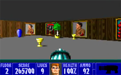 Może nie czepiajmy się za bardzo Iegendy, w końcu w takiej grze nie jest ona specjalnie istotna. Najważniejsze jest jak płynnie sie gra, jak dobra jest grafika, czy gra wciąga – a tu Wolfenstein jest rewelacyjny. Blazkowiczem steruje się za pomocą kursorów. Na ekranie pokazane jest to, co on widzi – z perfekcyjnym zachowaniem wszelkich reguł perspektywy i zasłaniania ścian przez inne ściany. Kursor do góry to ruch do przodu, kursor w dół to ruch do tylu, a lewo i prawo pozwalają na obracanie sie w odpowiednim kierunku. Do obsługi pozostały jeszcze strzał, otwieranie drzwi i ruch w bok, które można przypisać praktycznie dowolnym klawiszom. Do sterowania można też użyć myszy lub joysticka.