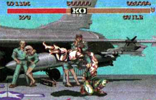 Drugą wspaniałą rzeczą zaraz po grafice, jest bardzo duża rozmaitość ciosów jakie mogą wykonywać poszczególne postacie. Od razu mówię, że dany Boss ma specyficzne dla siebie ciosy co urozmaica grę. Mógłbym w tym miejscu podać pełną listę ciosów dla poszczególnych graczy, ale ograniczę się tylko do opisu tzw. ciosów utajnionych. Cóż takiego są te ciosy utajnione? Ano są to takie kombinacje wychyleń joysticka wraz z użyciem FIRE po których dany delikwent zieje ogniem, czy też przemienia się w żywy tajfun roznoszący w pył wszystko co znajduje się w odległości jego śmiercionośnej nóżki.