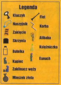 Pierwsze co Jaffar zrobił, to zabrał butelkę i zszedł do podziemi. Stamtąd wziął kartkę z zaklęciem, oraz napełnił butelkę winem z beczki, zabrał też walający się po podłodze klucz. Na dolnych kondygnacjach zamku odkrył wielkie wrota z napisem „Sezam”. Odczytał więc hasło zapisane na uprzednio znalezionej kartce. Dał się słyszeć zgrzyt i grzechot łańcuchów, po czym Sezam otworzył się. Wewnątrz leżał worek złota, który szybko znalazł się w kieszeni Jaffara. Książę udał się do skrzyni zabierając po drodze korbę, tak na wszelki wypadek. W skrzyni, którą dało się otworzyć kluczem, znalazł złoto, powędrował wyżej, aż na samą górę, do miejsca w którym dostał się do pałacu. Znajdowała się tam krata, którą podniósł korbą.