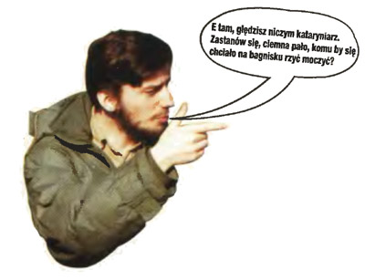 – W rzyci mam taką robotę. Ten gad bawi się z nami w ciuciubabkę. – Kopalny okrutnie się zdenerwował. – Idziemy na moczary. Albo tam go dupniemy, albo nigdzie – zadecydował i ruszył na południe.