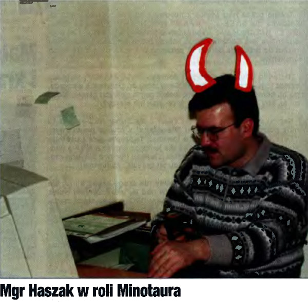 Odpowiedziały mu odgłosy walki. Jazgot, jaki robił troll do spółki z minotaurem, niósł się daleko po podziemnych korytarzach wieży Szurumbura. Gdy wydawało się już, że minotaur jest nie do pokonania, Kopalny resztkami swoich sił i bohaterstwa zdobył się jescze raz na odwagę i ruszył do ostatecznego ataku. Z zawziętą miną runął naprzód niczym sam bóg wojny i zdzielił byko – człeka lewym sierpowym. Minotaurowi rozjechały się nagle nogi, a oczka z koloru czerwonego przybrały barwę mętnego piwska bez piany. Kopalny i reszta odskoczyli przed walącym się ciałem, które wyciągnęło się jak pusty worek po ziemniakach w sortowni warzyw w Aninie pod Warszawą. Troll natychmiast dotrzymał słowa. Kiedy drużyna bardziej lub mniej stękając wydostawała się z komnaty przez otwór odwalony przez człowieka – byka, w sali pozostało leżące nieprzytomne ciało ze sterczącym z rzyci rogiem.